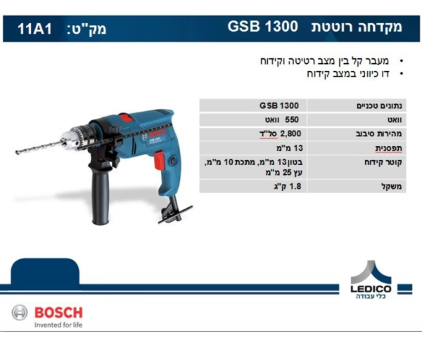 מקדחה מקצועית רוטטת Bosch – GSB 1300 550W